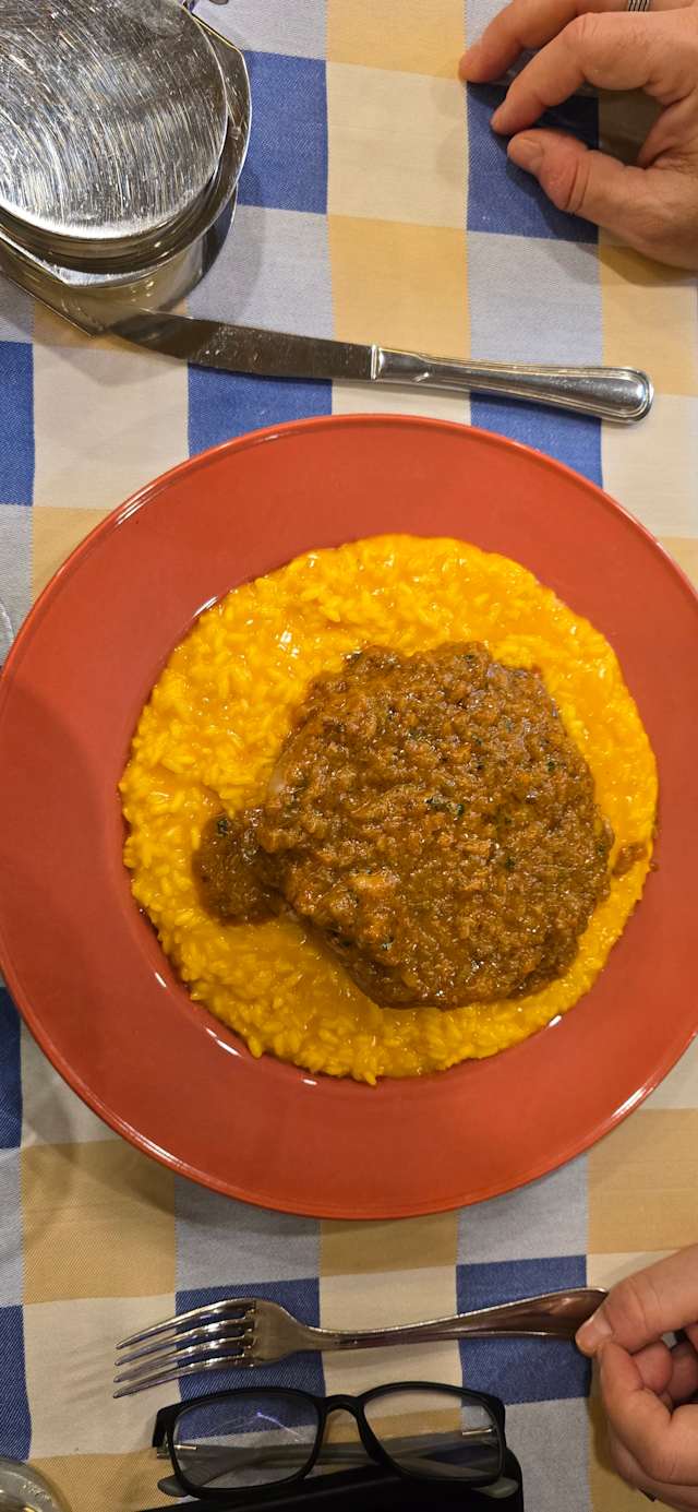 - Risotto alla milanese con ossobuco di vitello in salsa cremolada