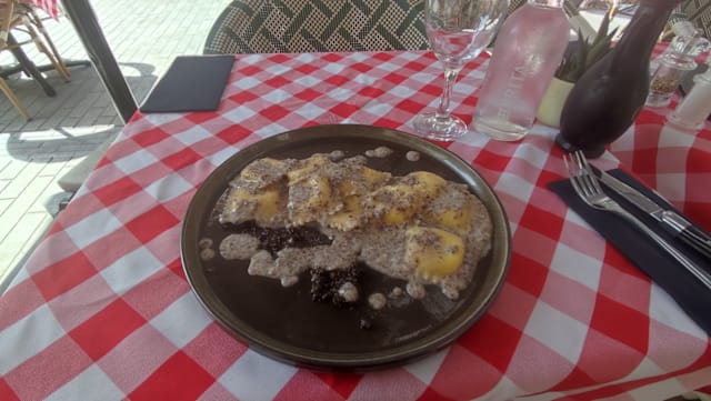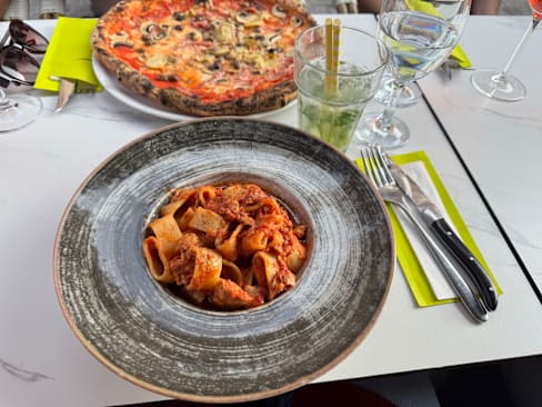 8/10Very delicious pasta, pizza was delicious too, but a bit overcooked. Cocktails were great. We sat outside and enjoyed the evening. So it is a recommendation.