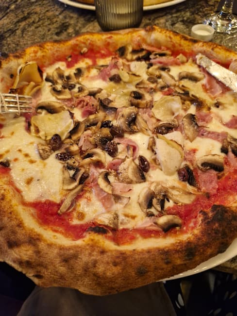 9/10The pizza was amazing, one of the best I have tried, but I still find it expensive. The environment was a bit tense at times.