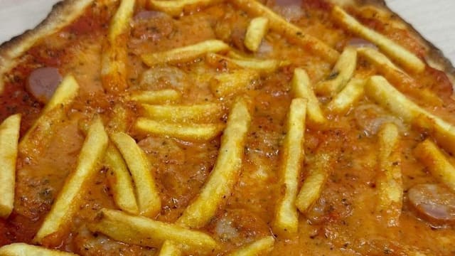 Pomodoro , mozzarella fior di latte, nduja artigianale di spilinga , olive nere denocciolate , cipolla rossa , peperoni