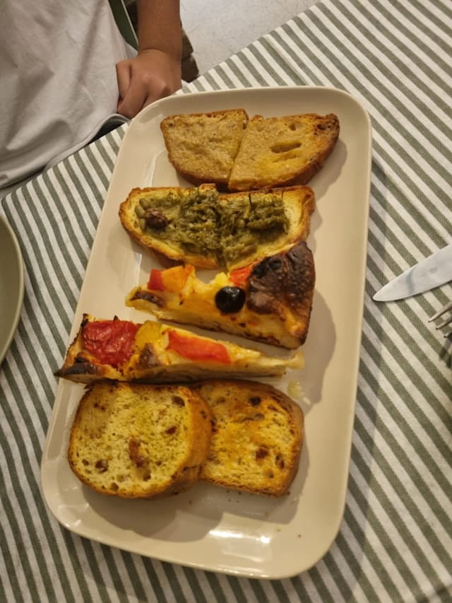 Tre strati di bontà in una bruschetta unica: pesto di finocchiella selvatica, guanciale di suino brado, scaglie di pecorino romano D.O.P. riserva 18 mesi.