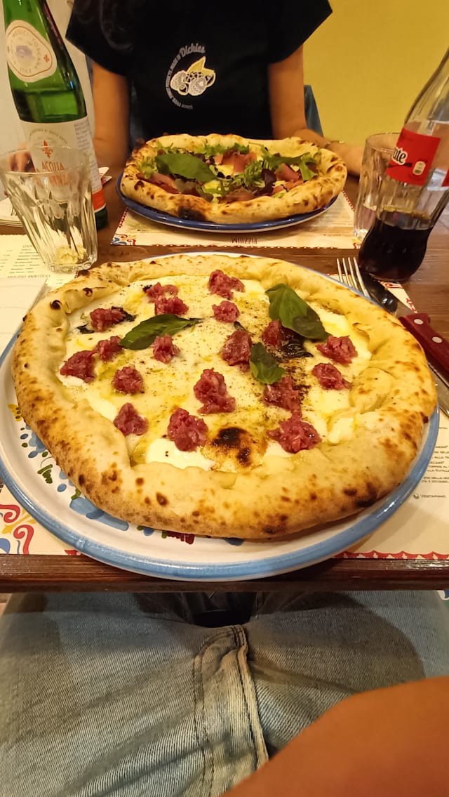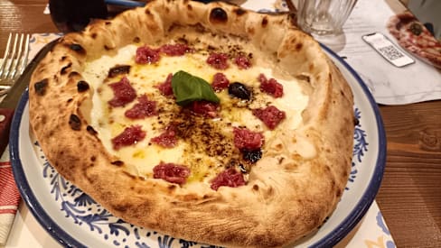 Fior di latte dei monti lattari, salsiccia di fassona 100% piemontese, olio al tartufo, pepe nero e cornicione ripieno di ricotta
