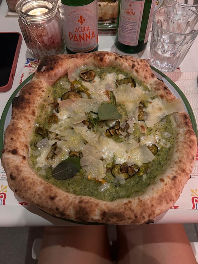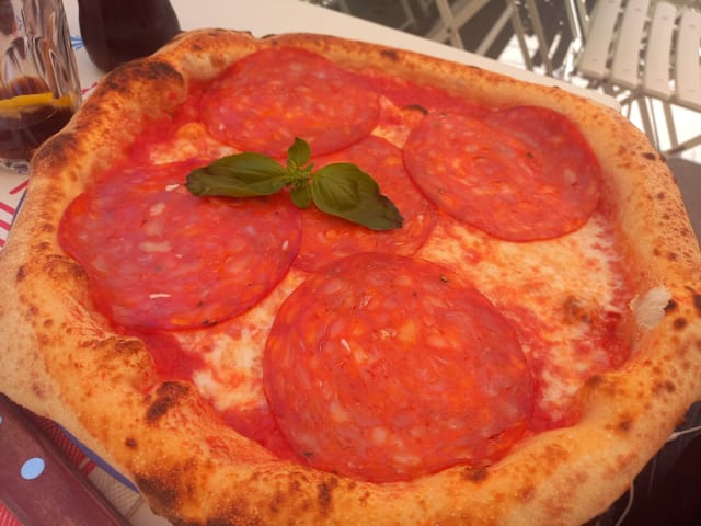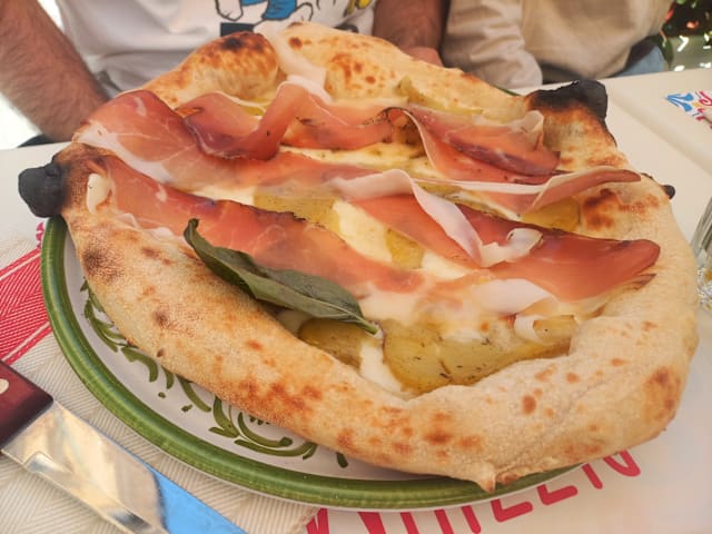 Fior di latte dei monti lattari, salsiccia di fassona 100% piemontese, olio al tartufo, pepe nero e cornicione ripieno di ricotta