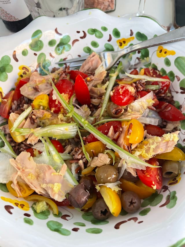 Fior di latte dei monti lattari, crema di stracchino, melone mantovano, prosciutto crudo di san daniele DOP e aceto balsamico