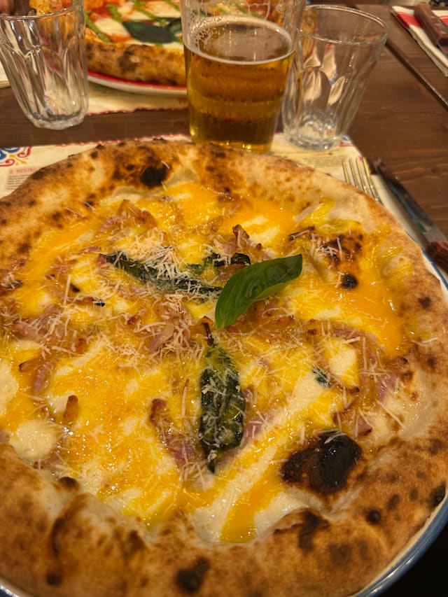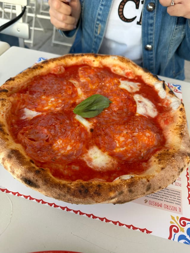 Fior di latte dei monti lattari, salsiccia di fassona 100% piemontese, olio al tartufo, pepe nero e cornicione ripieno di ricotta