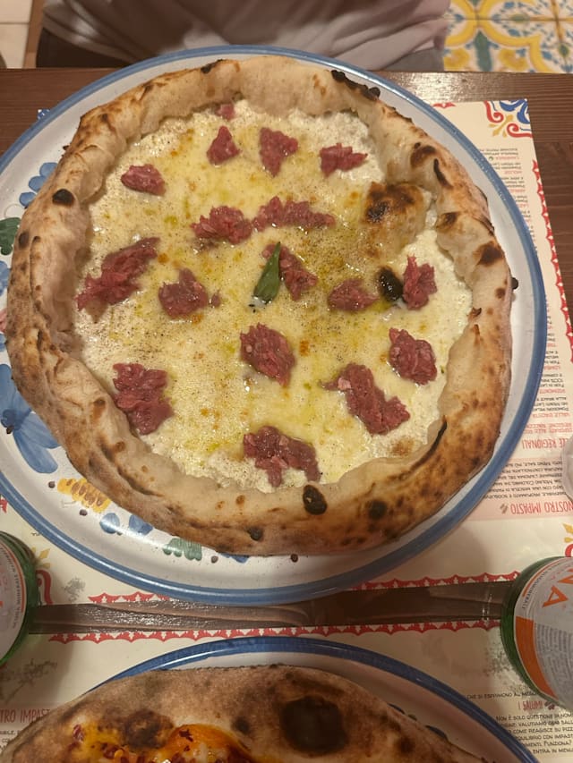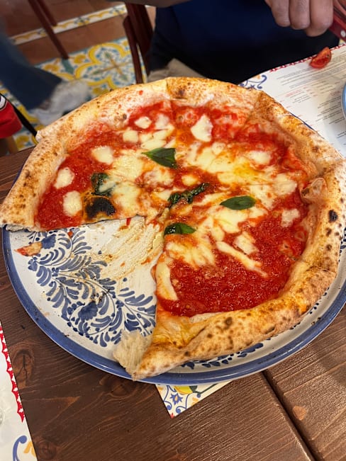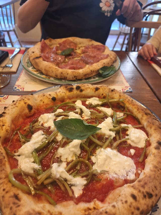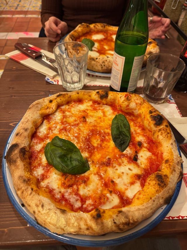 8/10Nice staff, rather austere decor. The classic marinara pizza wasn't crispy enough for me. We had a salad with burrata, a Pizza margherita, a Pizza marinara, two bottles of water, a bottle of good white wine and two espressos and paid €56.20. Pricier than comparable pizzerias.