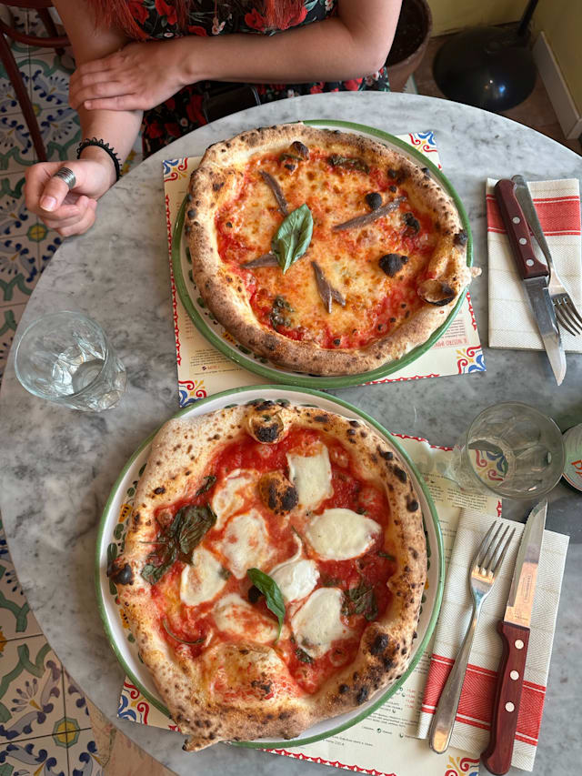 6/10More industrial like production line than a restaurant. Given worst table in the place unnecessarily as it was very early. Food came quickly: pizzas were ok. Our table was cramped with food and wine so we had to use the shelving; the waitress who took away the table given by another member of staff was brusquely unpleasant. The younger staff were efficient and friendly.