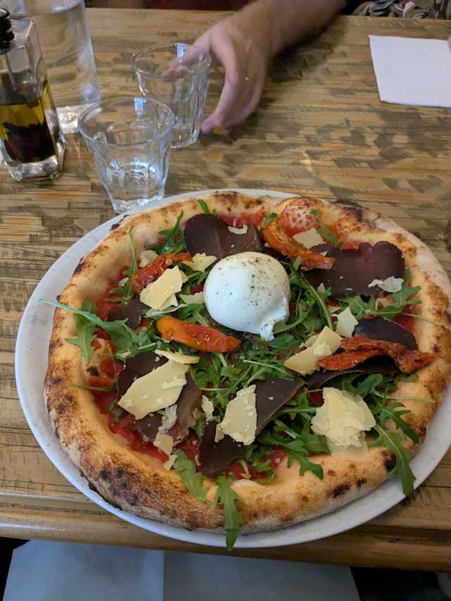 8.5/10Pizza was great (we took the one with dried beef, Comte and burrata) excellent And the salade saisonnier -> one suggestion is to put less oil and more salad (at the end I couldn’t finish since it was getting a bit greasy) The terrasse seat vibe is great! And servers are very friendly Careful, no AC inside