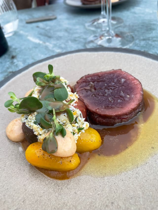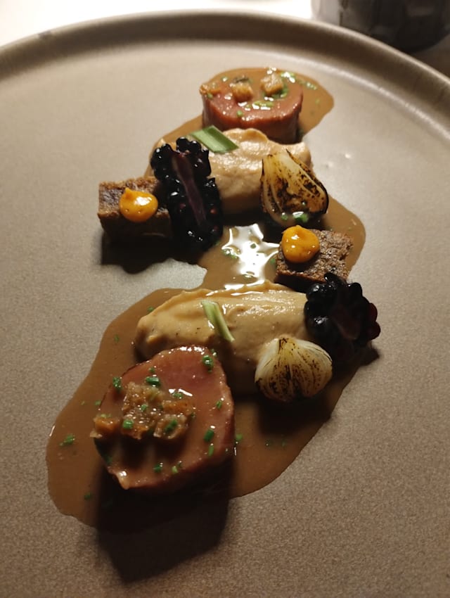 2/10It has never taken me as long to eat such a mediocre meal. The staff seemed to be overwhelmed by a particularly large table to the detriment of all other diners. The meat course which was served pink was so tough I could not finish it . Having to pick your knives to cut the tough pork dish was a complete and utter waste of time. It is not a place I could ever see myself returning to or recommending to a friend. I often rely on Michelin guide recommendations when choosing places to eat when travelling by this is the first time I was sorely disappointed and would wonder if they even deserve their accreditation.