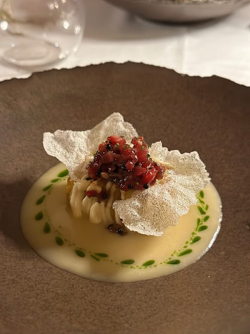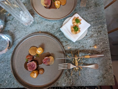 9.5/10+8Was here for my boyfriend’s birthday dinner. We got the long menu with wine pairing. Amazing regional and fresh food, and the wine pairings are original, local, and very well thought out. Really generous pourings for the wines as well! Portion sizes are rather generous and you won’t leave hungry. They even prepared a special cake at the end of the meal (which we had to take away because we were too full). Slightly understaffed the evening we went, so the wait time between courses was quite long and we ended up being in the restaurant for over 4 hours for the 9-course menu, was really sleepy by the end of it (both because it was getting quite late and the alcohol). 10/10 would recommend!