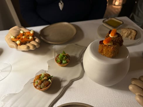 4/10The time invested in this dinner is absolutely ridiculous. After 2.5 hours, 2 bottles of wine and just 4 bites of food served to us in some weird volcanic puzzle diorama, I cannot explain how frustrating and baffled we were. We felt like we were hostages to our own dinner. This was not a lovely experience for us in any way. I would not recommend this to anyone. We ended up leaving early and getting a pizza.