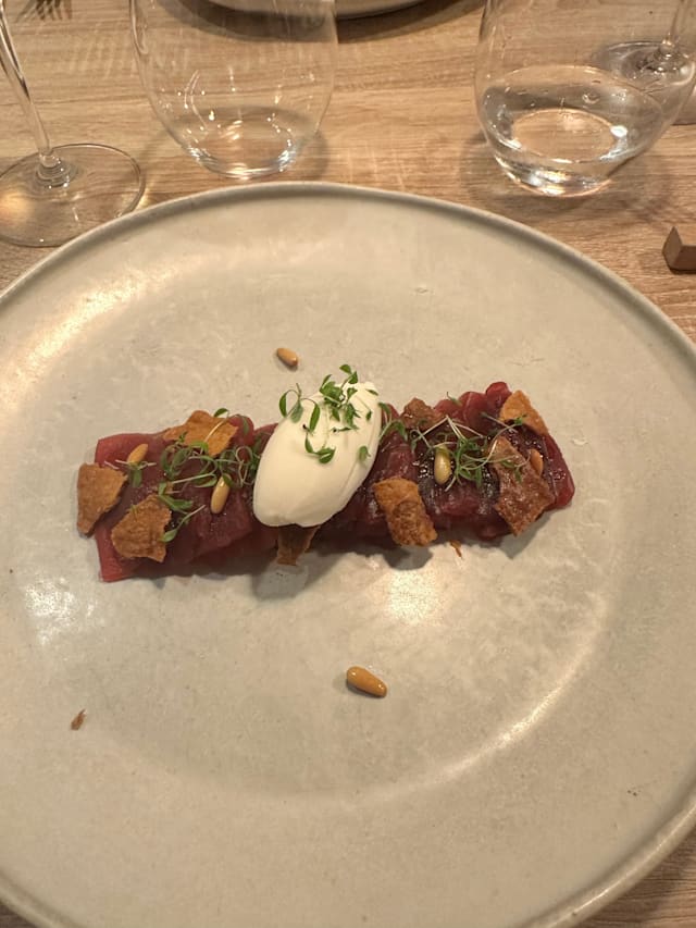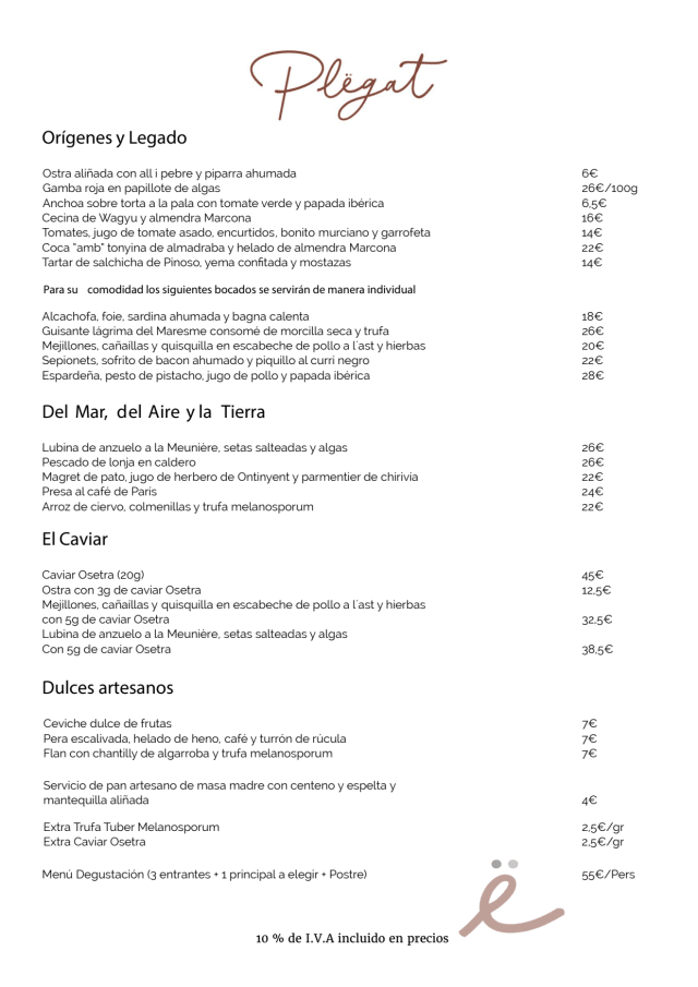 10/10My husband & I dined at Plegat last night for our anniversary on the recommendation of a "foodie" friend. It was excellent! From the moment you walk in the door, and they greet you by name to the professional, yet approachable service to the 5 course tasting menu that we experinced. It's an intimate space (5 tables), done in a minimalistic tone. Elegant. The food was creative & included Oyster with smoked paprika sauce; Sausage Tartare, Mussels with Pea Tendrils in herbed escabeche (my favorite dish!); Sea Ray & Solomillo, finished with an amazing Flan with Carob Chantilly. David, our server asked what types of wine we enjoy & guided us towards a blend of Albarino & Godello which was priced well, and paired perfectly with our meal. The restaurant should be looked at for a Michelin star. It was that good! Thank you David, Chef & Team for providing us with a memorable dining experience. We WILL be back!