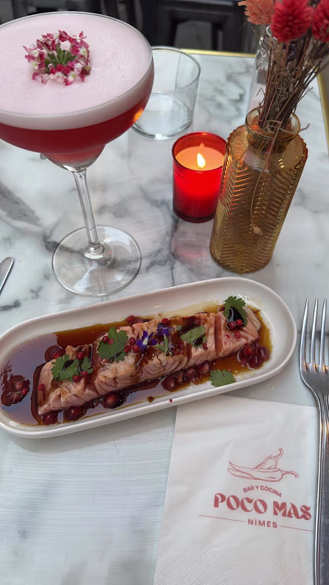 - Pavé de saumon crousti-fondant, peau croustillante et chair moelleuse, servi sur son lit de guacamole maison