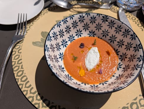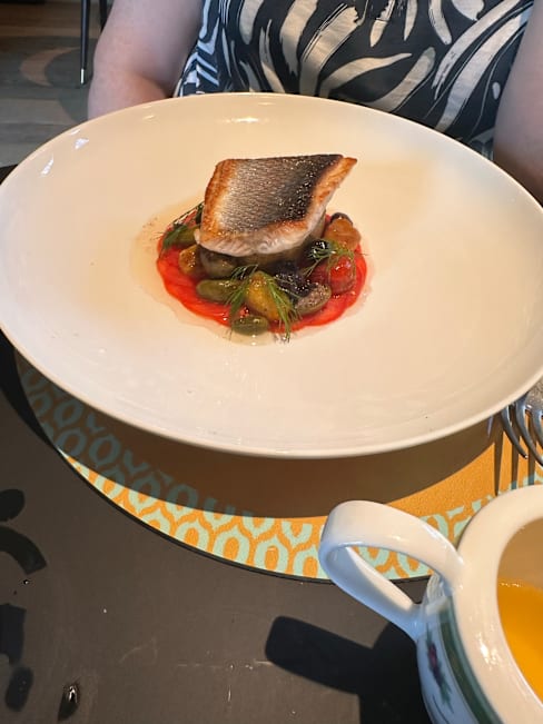 10/10We had an outstanding memorable lunch. The service was so friendly and the chef came to the table to serve us too. We met Franky who is the sweetest dog. The food is Michelin standard in my opinion. Each plate is a picture. I had garden herbs straight out of their own garden too. I had pasta cucio e pepe made in pecorino. For main I had the slow cooked in oil baccala with peas, courgette and a gorgeous broad bean jus. My wife had mixed fried courgette, mushrooms and sage with an avocado dip, tagliatelle con tartufo (the special pasta dish of the day then sea bass with a mixed salad of tomatoes and peppers served with tomato water. We shared a tiramisu to finish. The surroundings are beautiful inside and outside. We will definitely come back and combine it with a stay