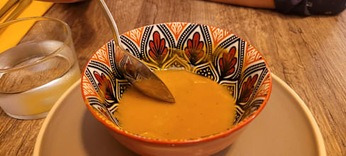 10/10I found this restaurant by chance on The Fork, and the photos captured my attention immediately. The decision was made within a second, and I am so happy that I chose Pois Chic for my boyfriend on this birthday. He is vegetarian so we have no problem with choosing dishes. We loved the atmosphere as soon as we arrived. The restaurant has such a cozy vibe with golden wall, lovely painting hanging (I really want to know the artist's name $1$2$3$4) and nice music as background. On that night there were not so many people so it was really calm and chill. The most important thing is food, of course! We ordered potimarron soup as entrée and I have loved it since the first sip. It is the best choice to start a dinner with in a chill, windy night as that day. We tried to guess the 7 spices that they used $5$6$7$8. Then, the main course. They look exactly the same as in the photos that we found online and the dishes were served with just "right amount" - not too much and enough to make you fulfill your stomach without making you uncomfortable. We had L'authentique (falafel) and Le jardinier. Love both! Especially the falafels because my boyfriend has tried falafel in several places and he liked it a lot. And the homemade bread really added bonus points. I actually wanted to order more bread. The service was fast and nice. I liked the conversation with the owner at the end because she was so friendly and she made us feel very welcomed. Coming back$9 OF COURSE!!!