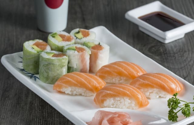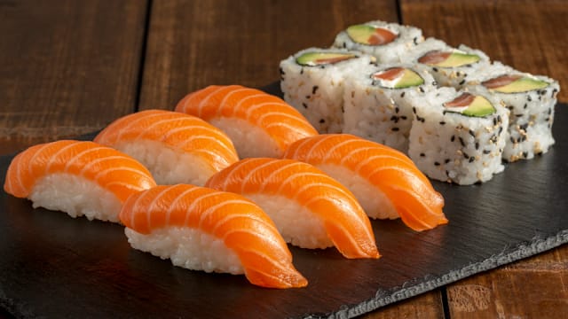 6 Cali S/A, 6 spring s/a, 6 maki saumon, 6 salmon roll fromage