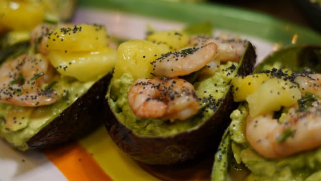 Aguacates Rellenos De Piña Y Spicy Langostino