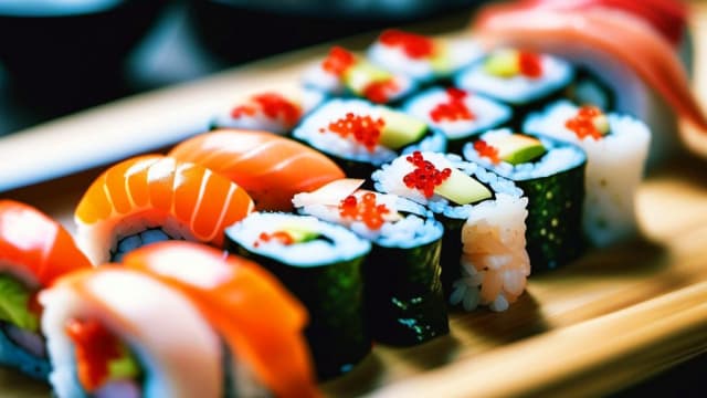 Sashimi de branzino, 4 uramaki y 6 nigiri mix.