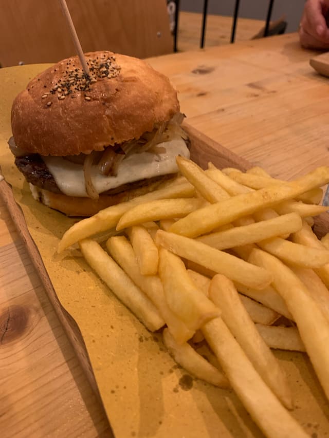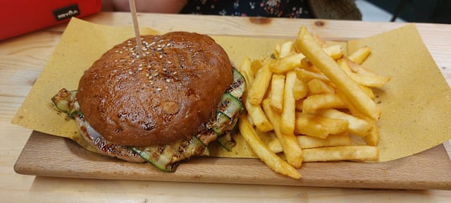 8/10Thank you for having us tonight! we tried two types of burgers, one with a chicken meat called Ughi Bughi and another one, the vegetable one called Mr Beans. Both were served with french fries. The burgers were very tasty, well seasoned, meat was juicy, the bean paste was intense. Our one suggestion would be to do not bake the bread so long in order to prevent from being too dry. The local is pleasantly cooled with air conditioning and located in the center part of Ancona. The staff is very friendly and servs the meals quickly.