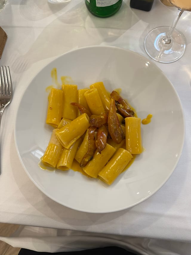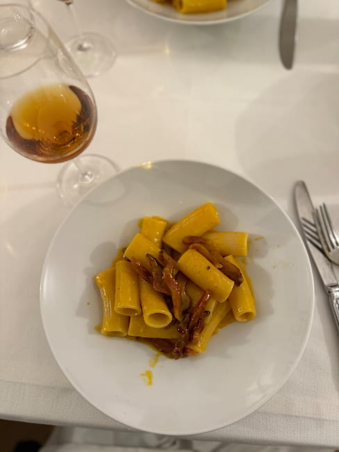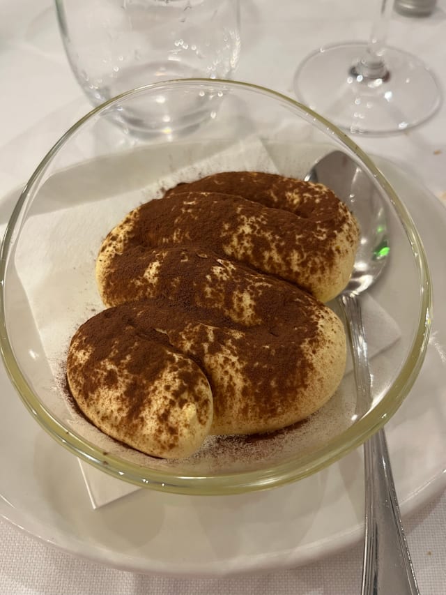 9.5/10So happy we were able to get a reservation! They changed our table to accommodate being close to a ventilation device that was cold and blowing air! So nice! Our waitress was someone knowledgeable in wines and recommended a DOCG Lazio red wine which was wonderful and inexpensive, we loved it! Our neighbors ordered a wine that was double our cost and not a DOCG wine. We shared our dishes, they split them all! We had fried anchovies with sweet red onions, sphagettone with spicy sauce and veal, with potatoes. OMG! Great food, wonderful service, everyone around us happy and eating with great pleasure! Great restaurant!! 🥰