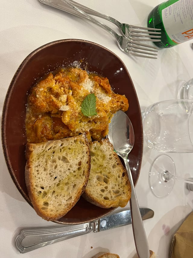 10/10Fabulous little find! Recommended to us by a friend who lives in Rome, and it did not disappoint. Tucked away in a beautiful back street setting – quiet and away from the crowds. The food was fresh and absolutely delicious, bursting with flavour. Service was warm and attentive throughout. I’d highly recommend booking a table downstairs and asking to sit outside – it made the experience even more special.