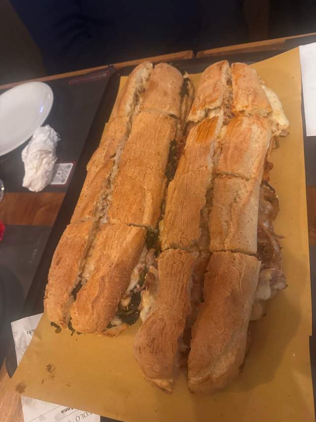 - Il nostro super mega panuozzo supera il metro di lunghezza. Consigliato per otto, dieci persone viene servito su un piatto di patate groffate e wurstel e decorato con spiedini di carciofini e salamini. Puoi creare il tuo panuozzo inserendo la carne, il contorno e il formaggio a tuo piacimento.