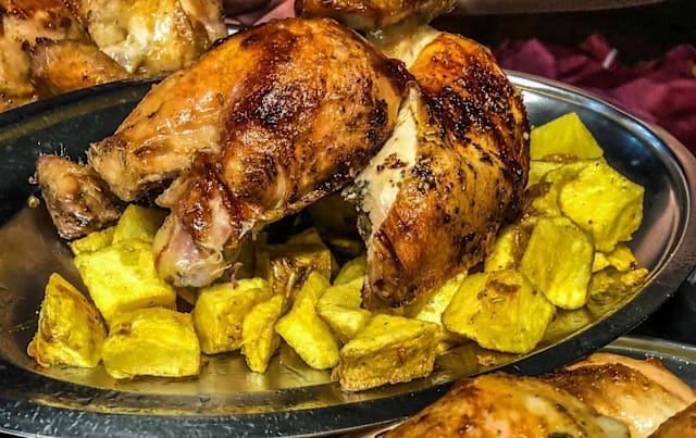 1/2 pollo allo spiedo al profumo di vino con patate