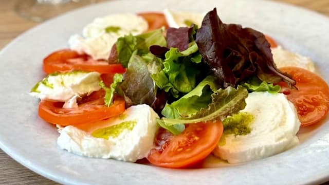 Tomate, mozzarella, anchois, olives, câpres et origan