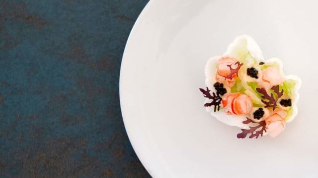 Risotto cacio e pepe con mazzancolle* e limone di sorrento