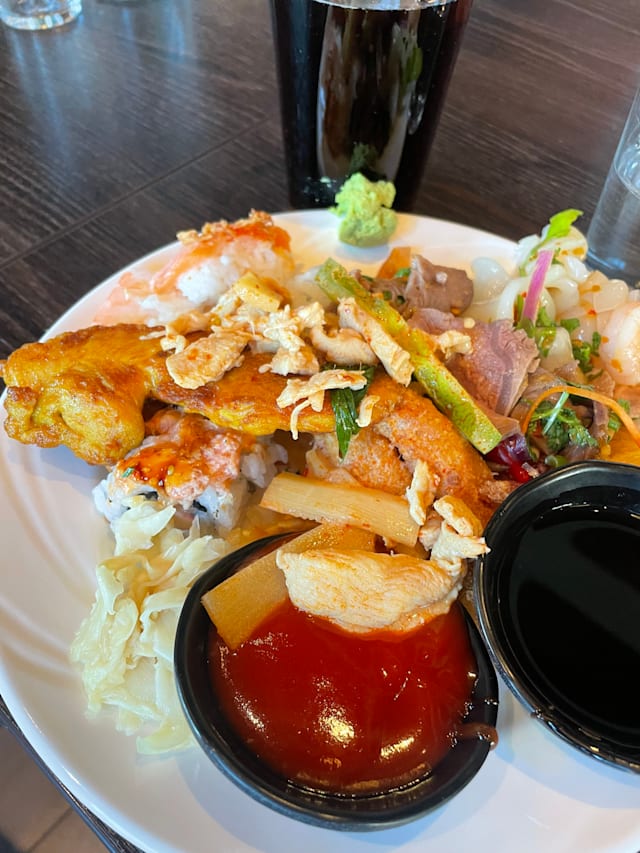 10/10One of the best sushi I had in a buffet. Really tasty and fresh. Good Thai buffet that also tasted good and was fresh. Nice and friendly staff.