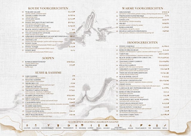 Voor een vaste prijs geniet u van een uitgebreide selectie aan heerlijke gerechten, variërend van verfijnde sushi en delicate sashimi tot verrukkelijke Koreaanse bulgogi en aromatische Thaise curry's. Laat uw zintuigen verwennen bij Ponzu, waar Aziatische culinaire kunst tot leven komt.