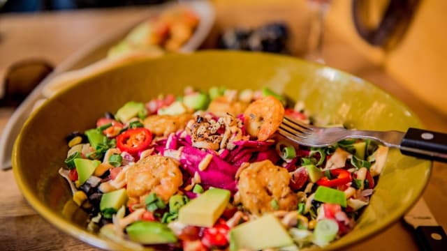8.5/10Good Mexican food! A nice selection of cocktails and mocktails. Service was great, very friendly staff and food as well as drinks arrived quickly after order. I’ve been here many times and it is always a good moment with good food!
