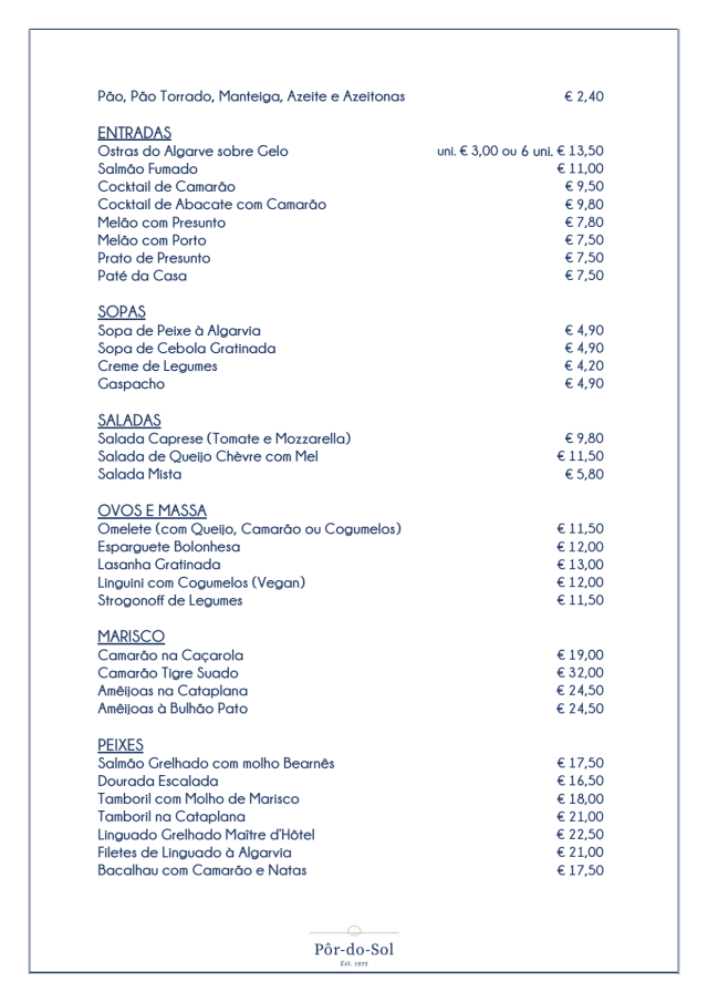 10/10Por do Sol get everything right. The charming waiters, the ambiance, the setting and of course the food is excellent. This is our favourite restaurant in Alvor, we have never been disappointed.