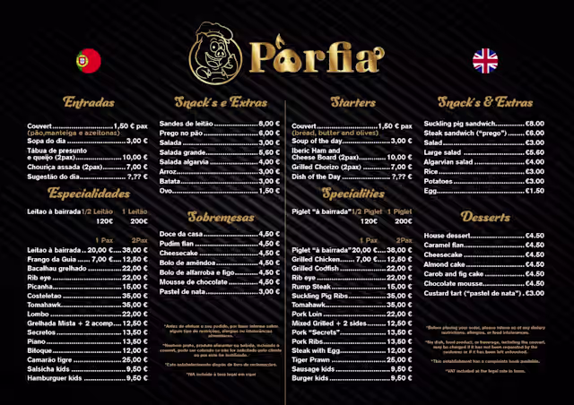 Porfia is identified as offering portuguese cuisine.