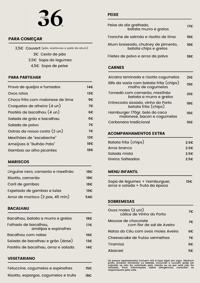 We went to Porta 36 for a birthday meal. We were not disappointed. The service was great. The food was amazing and the price was way below our expectations. If we lived near, we would be regulars.