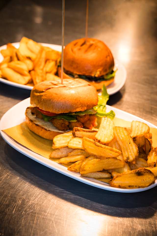 - Bun homemade, filetti di pollo croccante, lattuga, pomodoro, maionese