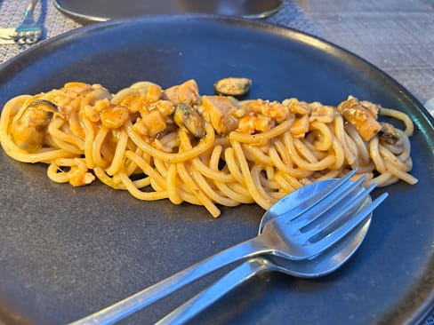 6.5/10The antipasto – street food – was dry as sawdust. The swordfish was tasty, but you had to season it yourself because it was served rather bland. We waited 10 minutes for the menus to be brought, and in the end we had to ask for them. I don’t know, maybe I’m invisible.