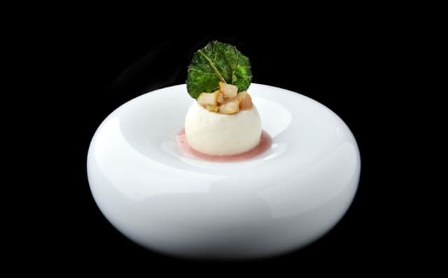Flan di pecorino al chianti su purea di pesca bianca e tartufo fresco