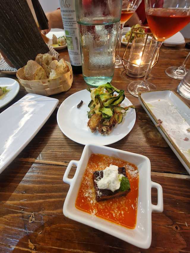 - In olio cottura nella sua salsa, spuma di peperoni e menta in giardiniera con croccante di capperi e limone