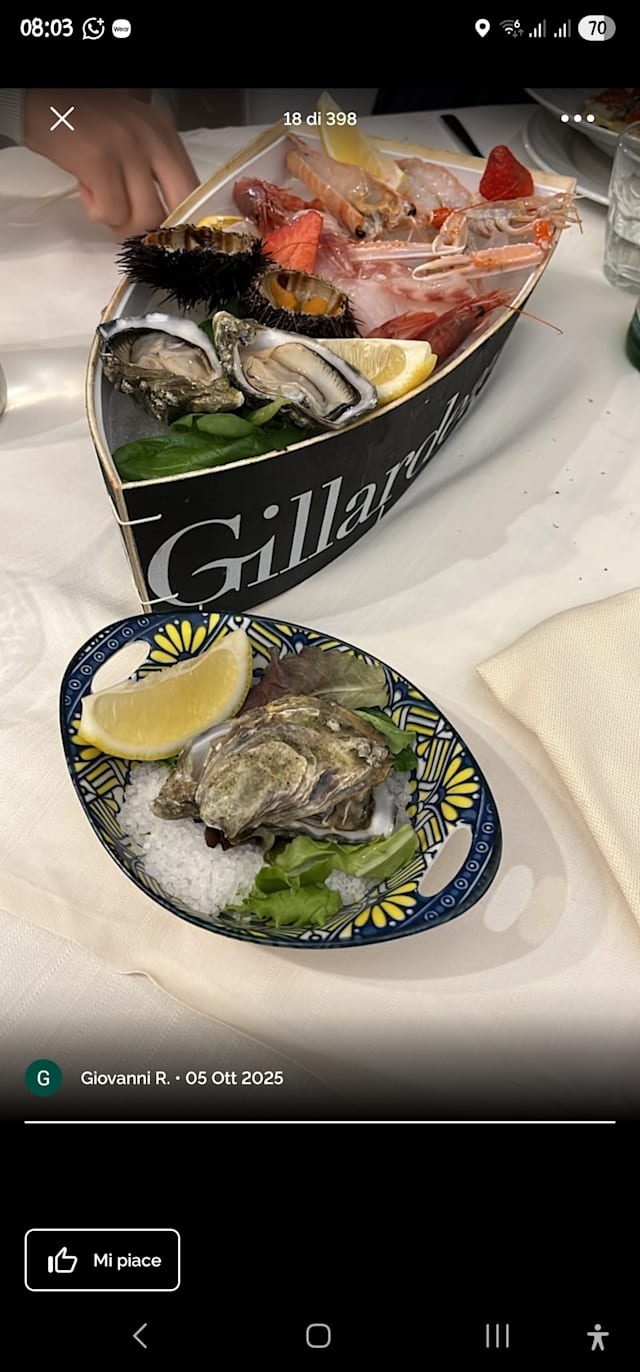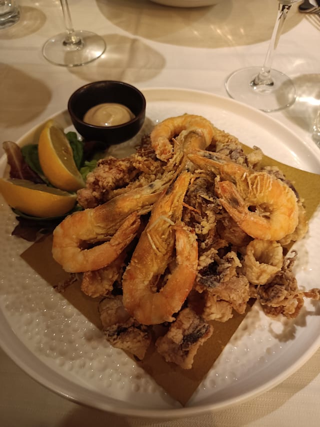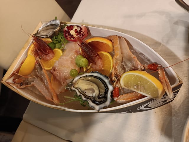 2 ostriche, 2 scampi, 2 gamberi rossi e carpaccio