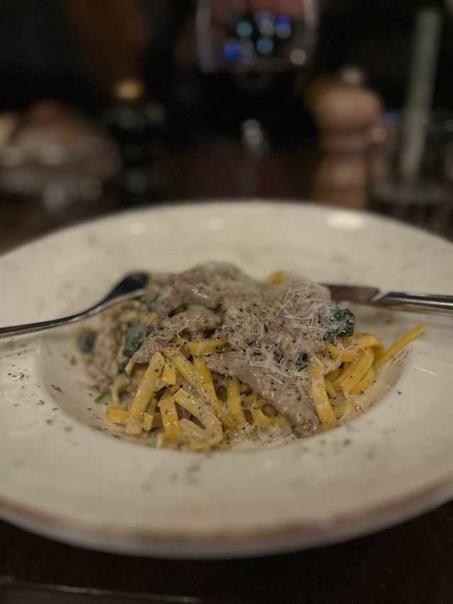 10/10The linguine with veal cream sauce was excellent. The Rosso di montalcino was reasonably priced and tasted excellent. Serving staff also were very friendly. Great table for people watching too