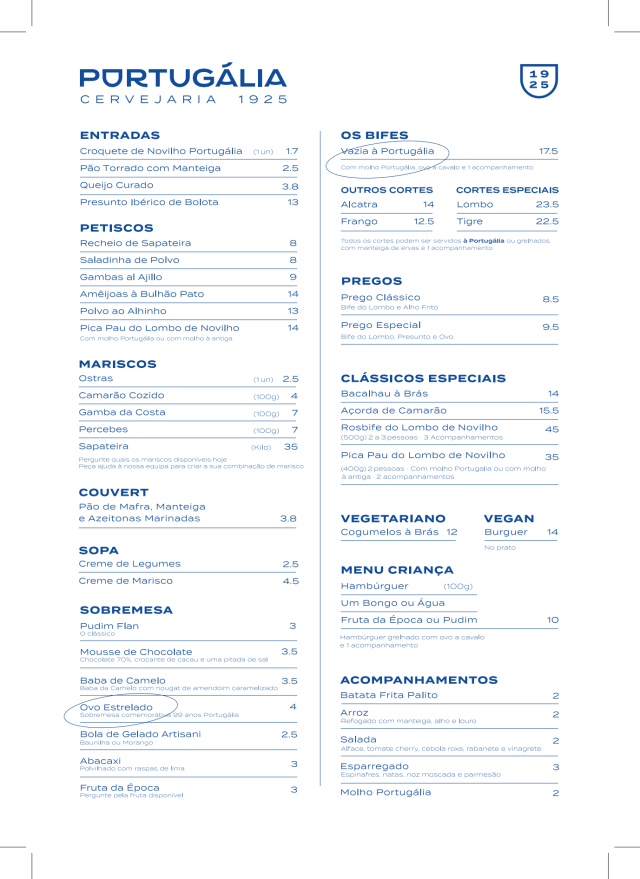 6.5/10I started going to Portugalia in 2013 and was so impressed by the simplicity and quality of the food that I made sure that I visited whenever in Lisbon but I have to say that the experience is no longer what it was. They no longer have a kids' menu. The bitoque has been downgraded beyond recognition. And, worst of all, my favourite, the pica pau is a shadow of what it was. It's so disappointing. I don't know if it's as a result of COVID-19 impact or measures but I'm really sad to say that I won't be back.