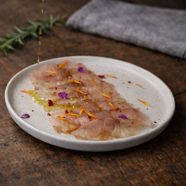 - Lightly cured white fish with dill notes, elevated by caviar.