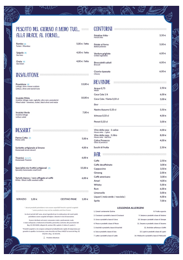 6.5/10the meal was very good. Fresh seafood and very well cooked. Pasta dishes were very abundant and tasty. The Poseidone appetizer is only for 2 people sharing, not for more.