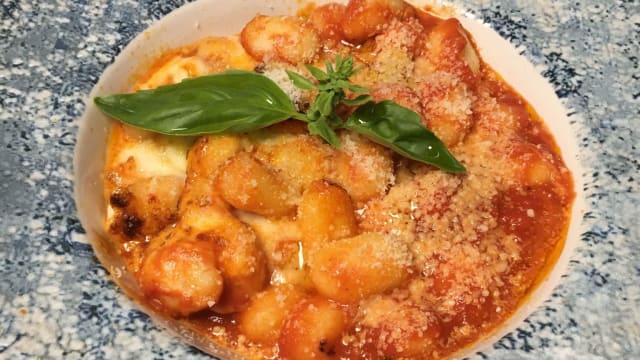Tomàquet, fior di latte campano, tonyina, olives negres, ceba vermella, alfàbrega i oli EVO