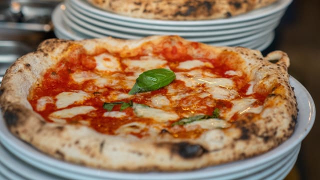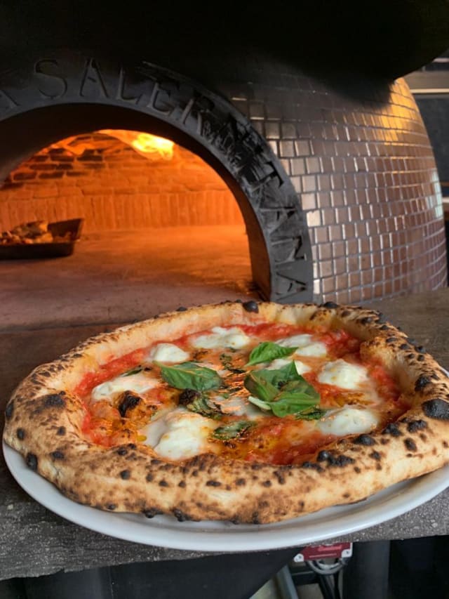 Fior di latte campano, vora farcida de ricotta, base de formatge provolone, spianata picant romana, ceba vermella de tropea, alfàbrega i oli EVO