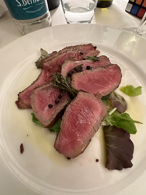 8/10Posta is a very Italian upscale locals restaurant. Specializing in Tuscan food and meat . We wanted to try a Florentine steak and ordered it medium rare. The steak was very under cooked. The plate was supposed to be sizzling it was not hot . That piece of meat was perfect if you like rare rare. Which the Italians like . We ate some of it and asked them to cook the rest more and that opened the flavor more to a Berns steak taste . This is a cultural thing . We were the only Americans eating there . I noticed pasta dishes and everyone prefers a special appetizer fried zucchini flower . That was delicious perfection. The wines are Tuscan . I think if you’re in the mood for steak this is a very good choice. If you like it medium and it arrives raw send it back . The chef will cook it a bit more The food was delicious we did not have desert It’s a low key elegant restaurant. I feel the owner could have tried to make us feel welcome and talk to us . The only negative….