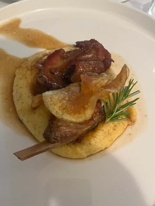 - Uovo "azienda val di piazza", cipolla fondente, spuma di patate arrosto, pancetta