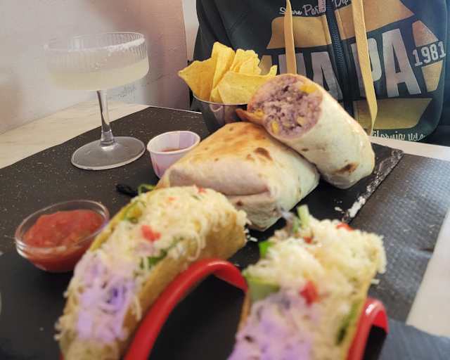 - 2 Tacos croccanti con carne di manzo (o con verdure grigliate) + 1 burrito con carne di manzo (o vegetariana) + nachos con formaggio