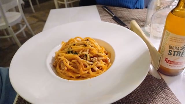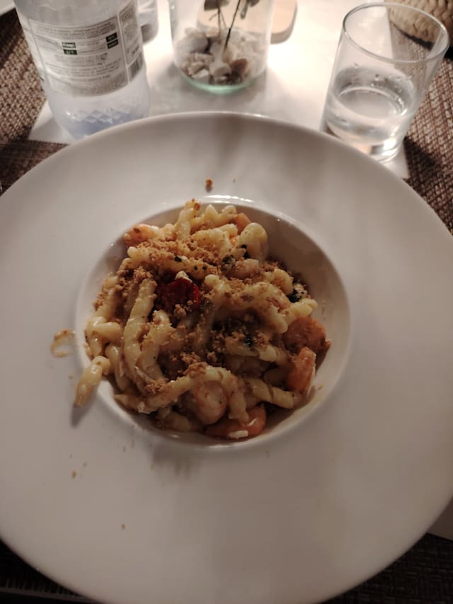 8.5/10Busiate are excellent especially with fish, but also the pesto Trapanese was delicious. The location is quite convenient considering that is close to the parking area. The staff well recommended us what order!
